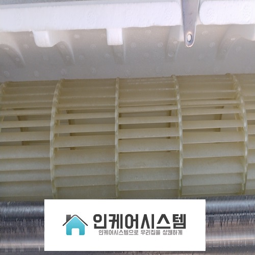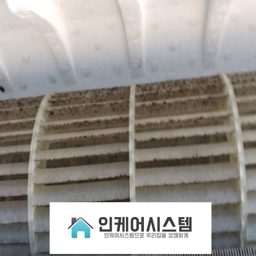 송풍팬의 곰팡이는 냉각핀 청소할 때 같이 청소합니다.
